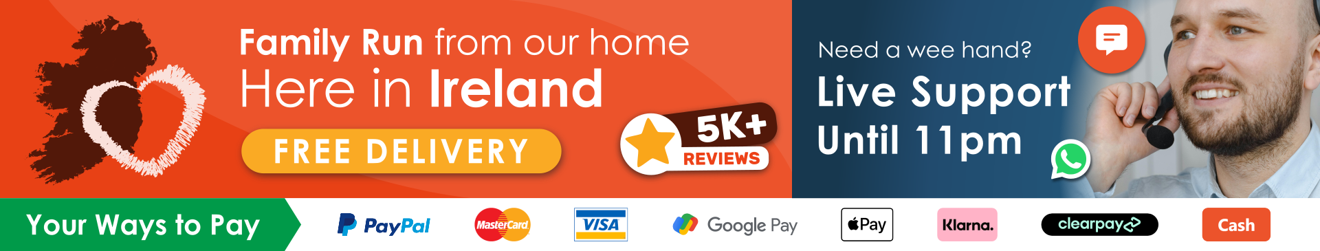 Delivery to Ireland only. For south coast or west coast deliveries, please allow some extra time before delivery.