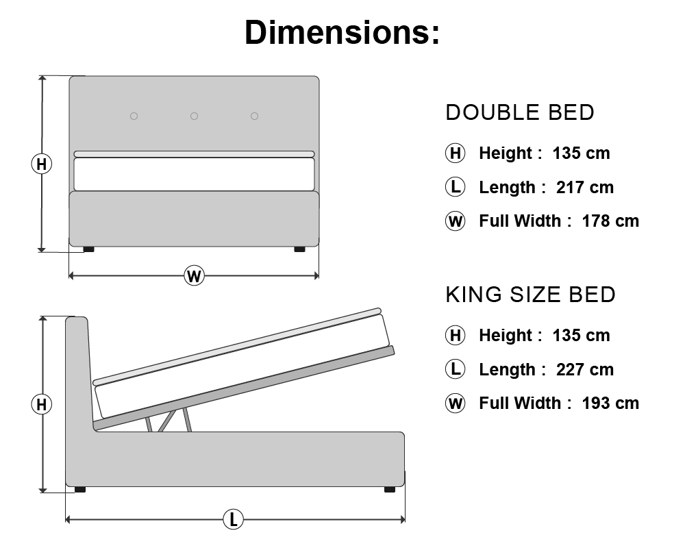 The headboard height of the Marquise Ottoman bed is 135cm. Should you have further inquiries, please don't hesitate to contact us. Cheers!